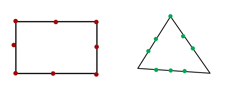 на сторонах многоугольника отметь 8 точек так что бы на всех сторонах их оказалась одинаково количества