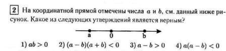 Из координатной прямой водно, что некое число a меньше нуля, а число b больше нуля. Ну давайте проанализируем каждое из следующих утверждений