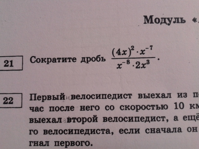 (4x)^2 * x^-7 / (x^-8*2x^3) = 16x^-5/2x^-5=8