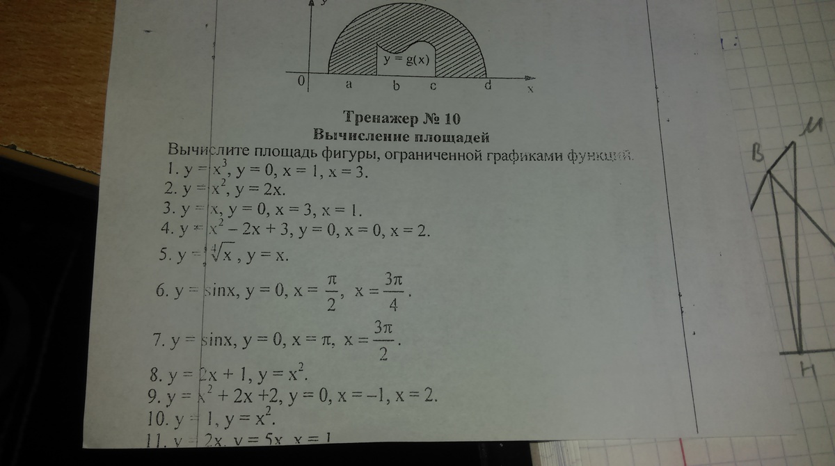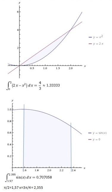 Первообразная для x^2 будет (x^3)/3, для 2x будет x^2. Для sinx будет -cosx. Находишь по формуле Ньютона-Лейбница ответ.