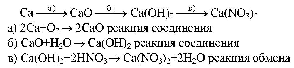 б)кальций-оксид кальция-гидроксид кальция-нитрат кальция
