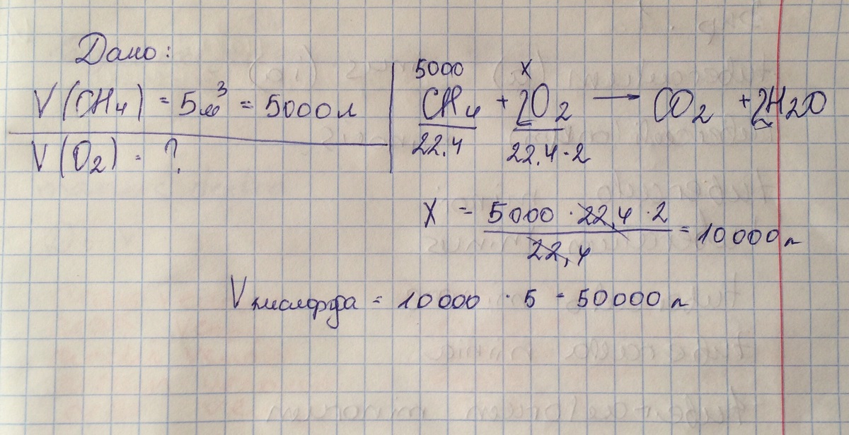 какой объем при нормальных условиях кислорода необходим для полного сжигания 5 м^ 3 метана CH4