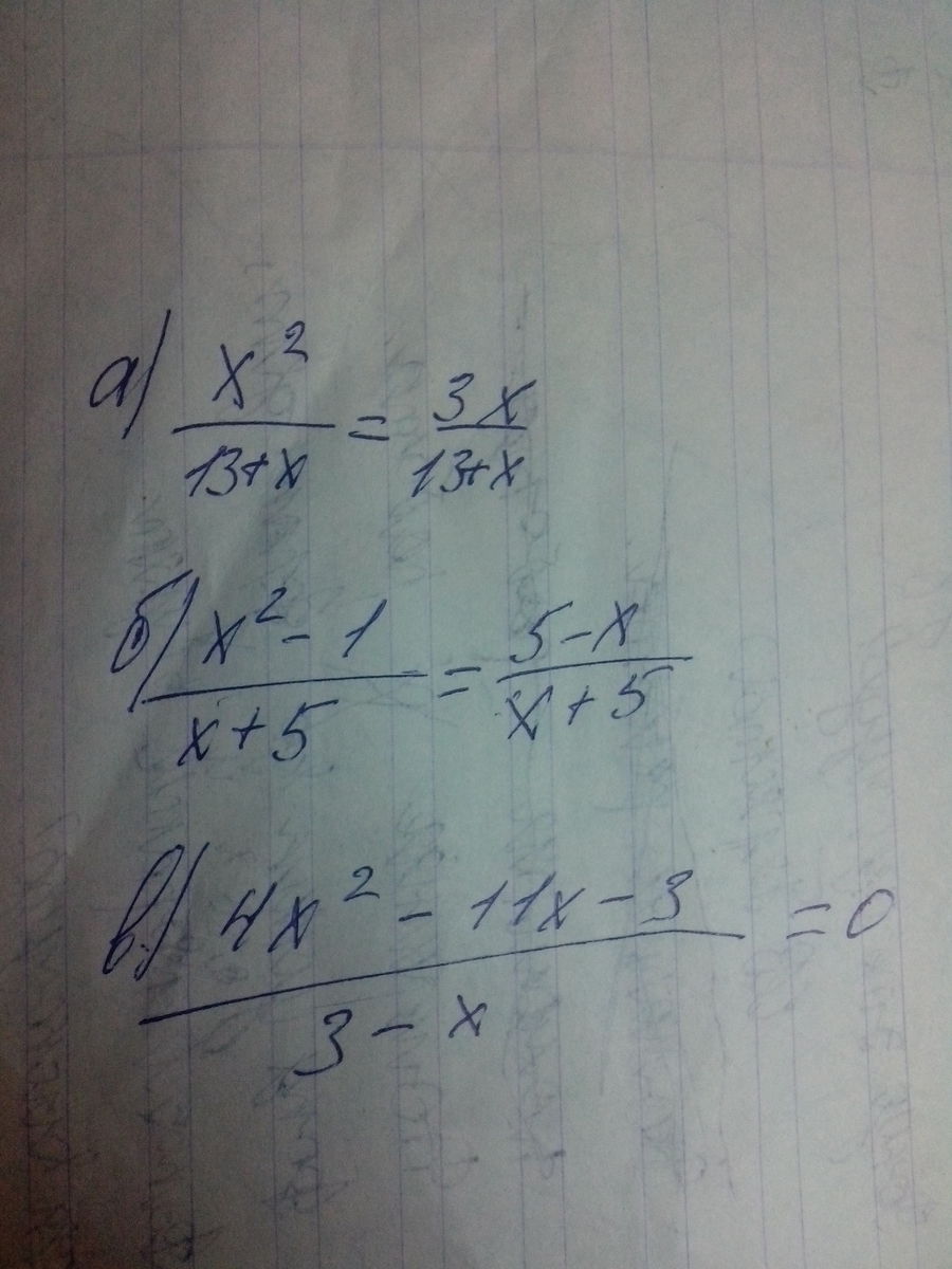 а)x^2=3x x*x=3*x первый корень очевиден х=0.