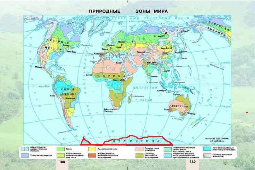 Если посмотреть на карту природных зон, которая дана ниже в приложении, то можно увидеть,что в Антарктиде расположена природная зона антарктическая пустыня.