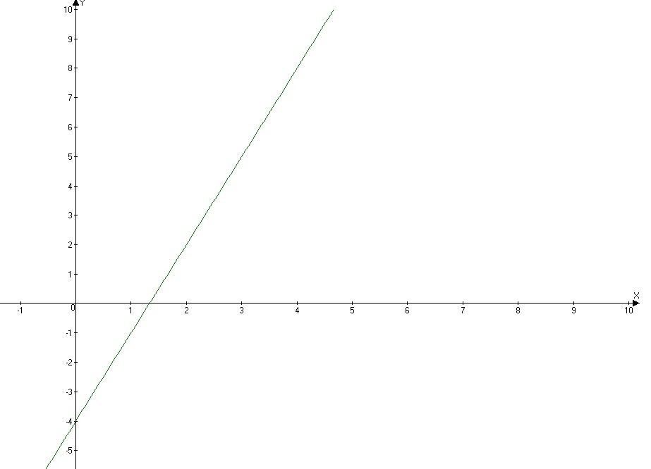 у = 3х - 4 - прямая, которая проходит через точки (0;-4), (4/3;0)