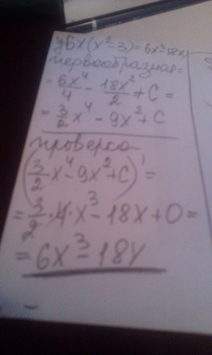 Найти общий вид первообразной y=6x(x^2-3) (Сделать проверку)