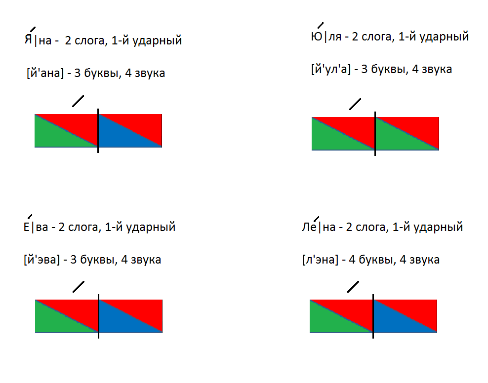 Звуковая схема слов: Яна, Ева, Юля и Лена - в приложении