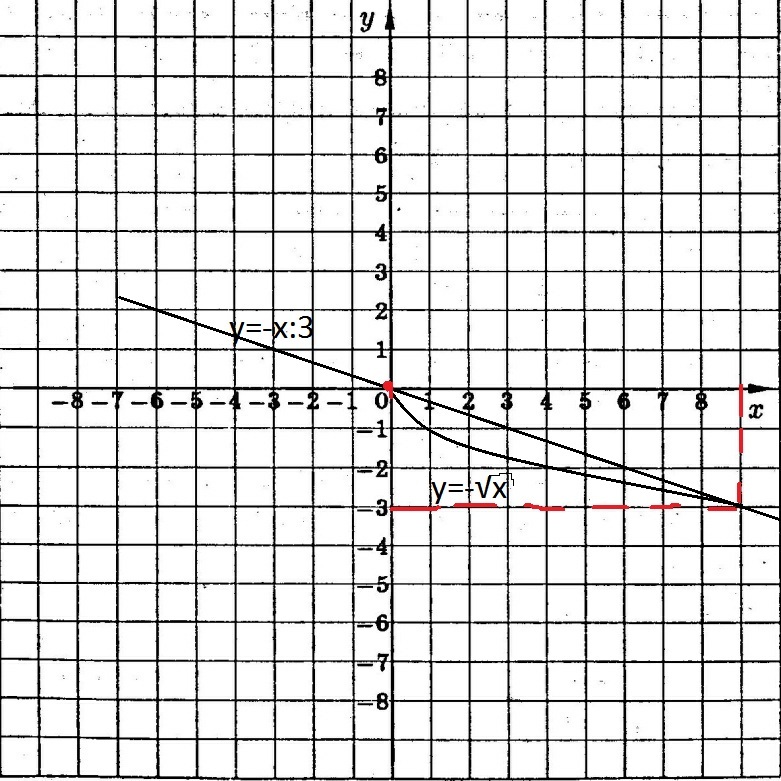 постройте график функции y=-кореньx.найдите наименьшее и наибольшее значение этой функции на отрезке[5;9]