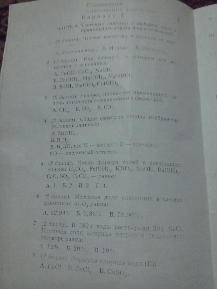 1-В; 2-В; 3-А; 4-Б; 5-Б; 6-А; 7-В; 8-Б; 9-Б;