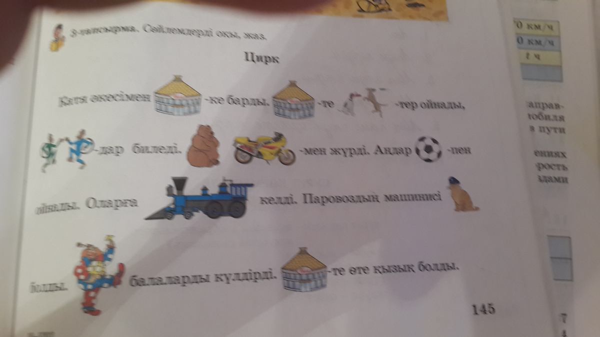 катев əкесімен циркке барды. циркте иттер ойнады, маймулдар биледы. аю мотоциклмен жүрді. аңдар доппен ойнады. оларға паровоз келді. паровоздың машинисі мысық болды. клоун балаларды күлдірді. циркте өте қызық болды