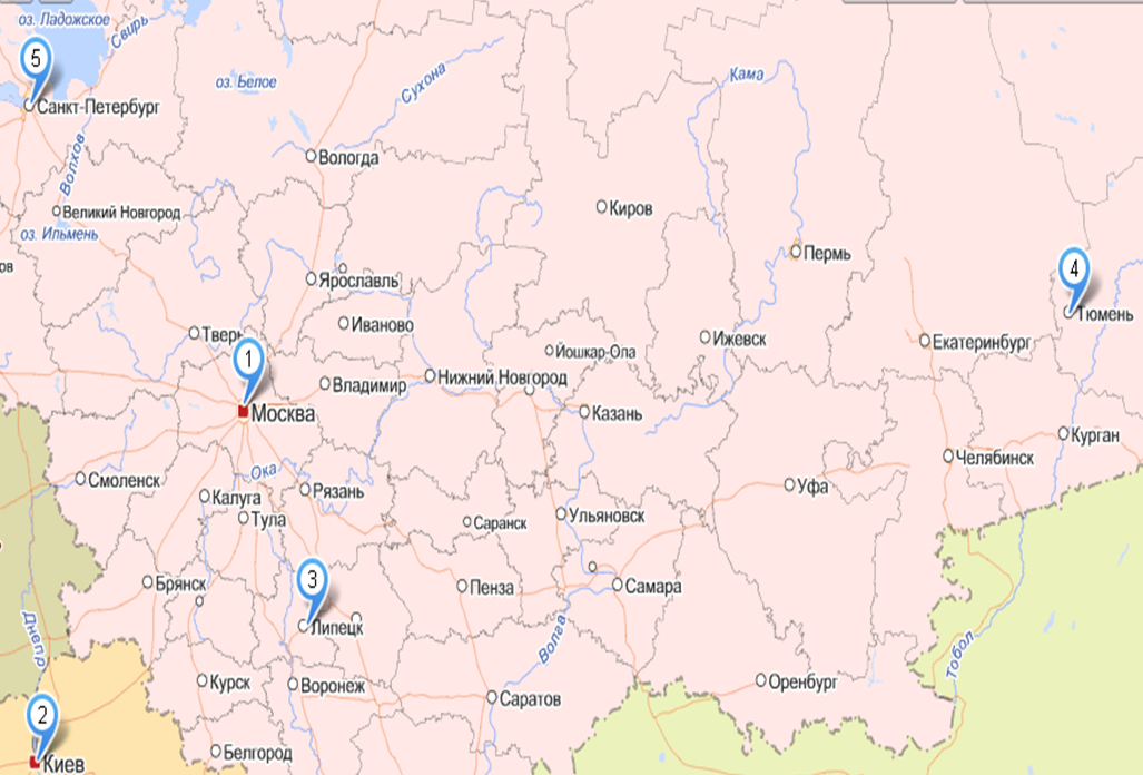 Москва - Саратов - Казань - Екатеринбург - Омск - Москва.