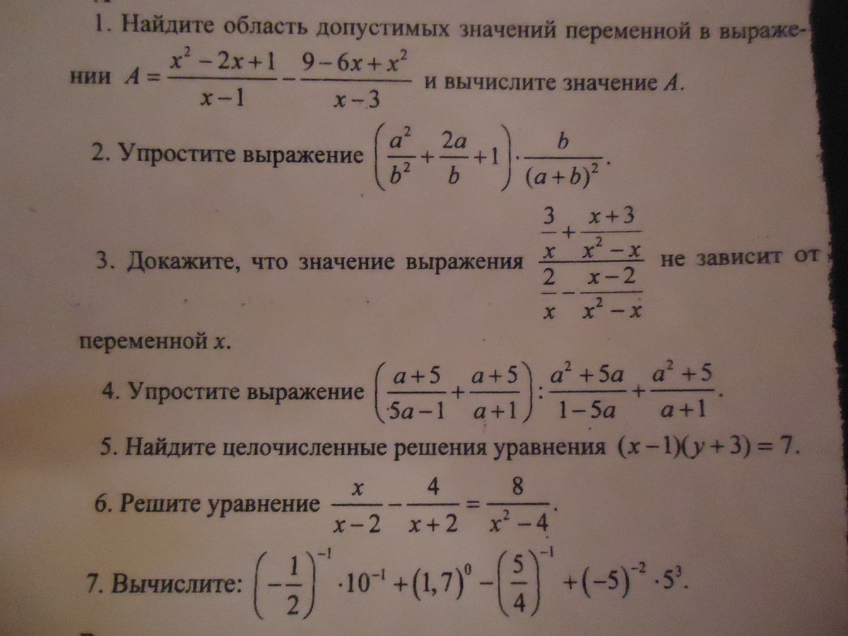 ПОЖАЛУЙСТА, ЗНАТОКИ АЛГЕБРЫ Я УМОЛЯЮ ВАС ПОМОГИТЕ МНЕ, БУДУ ОЧЕНЬ БЛАГОДАРЕН ВАМ, все номера, все семь номера, пожалуйстааа срочно, очень надоооо;((