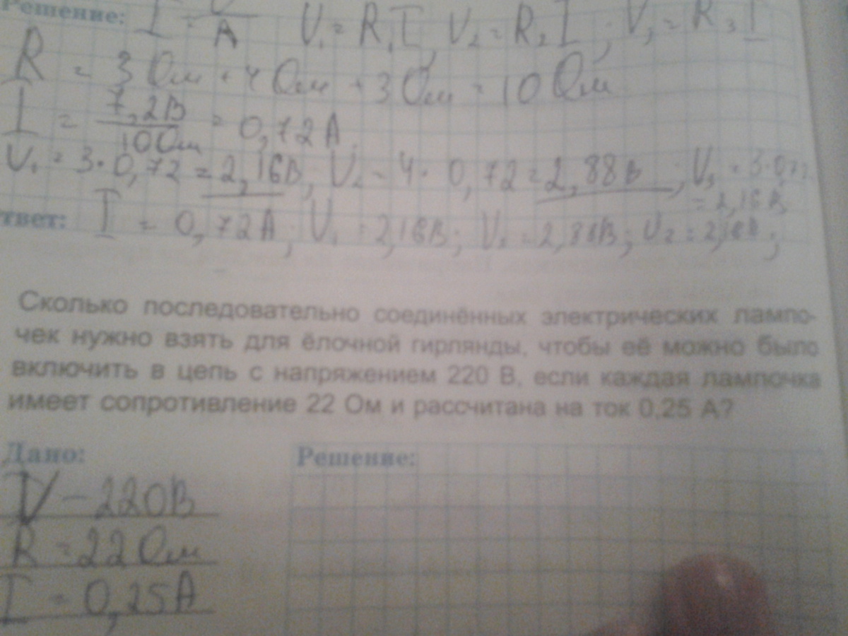 I=0,25A, R1=22 Ом, Uo=220 В, при последовательном Io=I1=I2=...In, Ro=nR1 ; по закону Ома Io=Uo/Ro; Ro=Uo/Io=220/0,25=880 Ом, nR1 =880; n=880/22=40Т.е лампочек должно быть 40