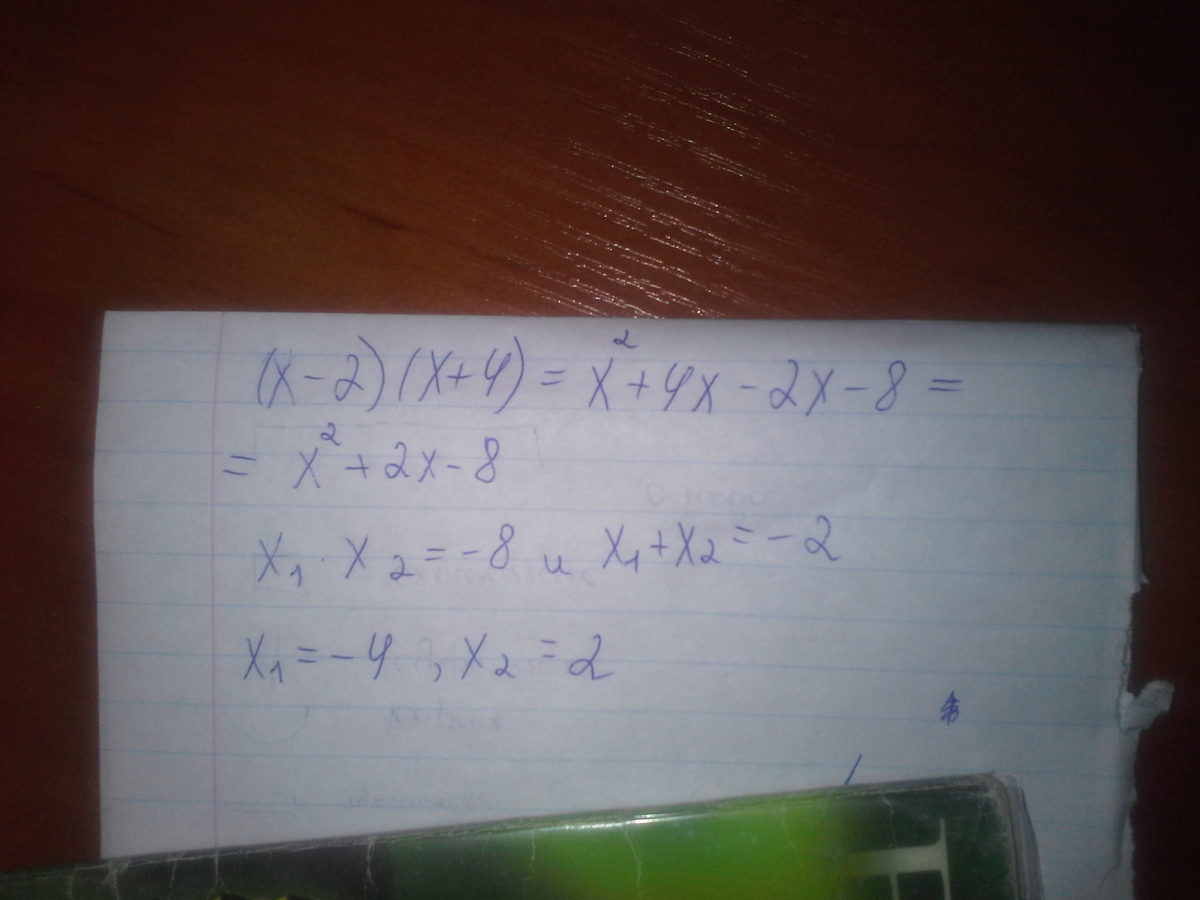 (x-2)(x+4) = x^2 + 4x - 2x - 8 = x^2 + 2 x - 8