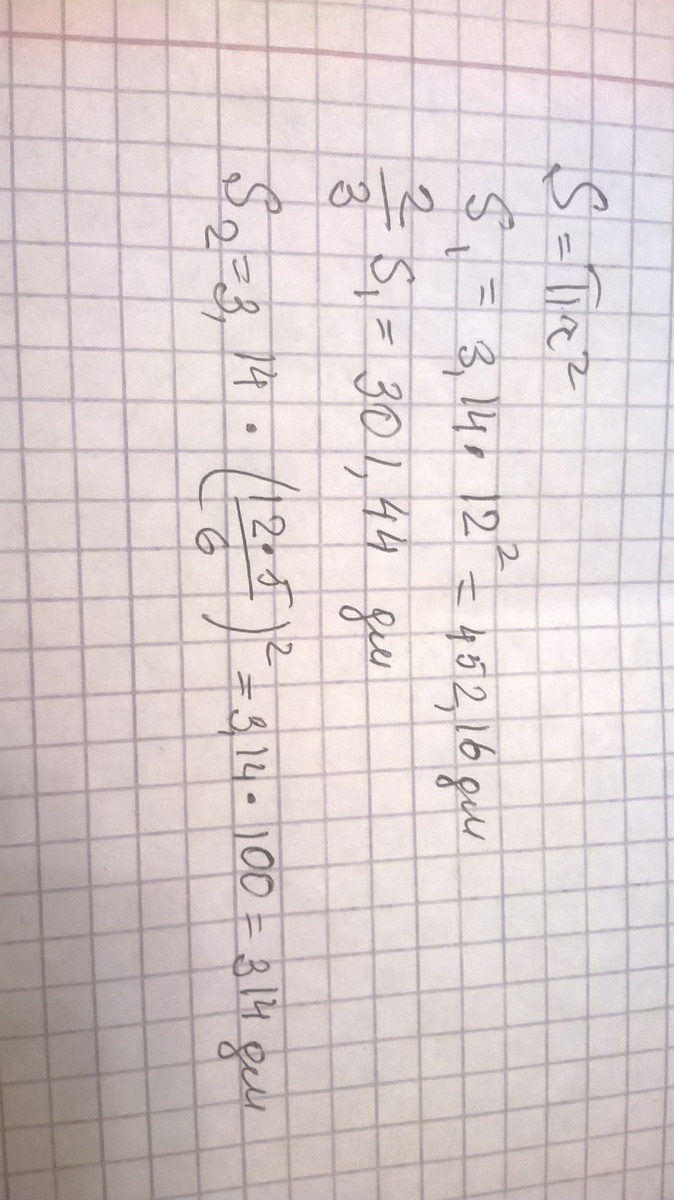 12 дм, и площадь второго круга, радиус которого составляет 5/6 радиуса
