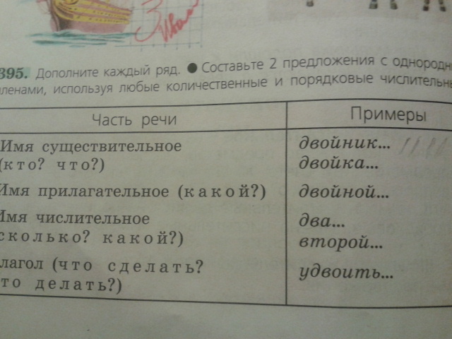 Соотнесите по группа.м.Имена числительные, существ.,если есть прилагательные.По группам распределить.