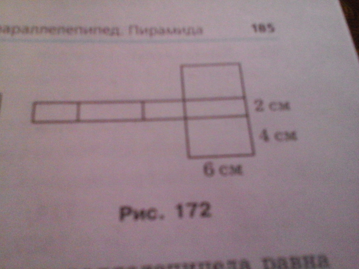 Вычислите площадь поверхности прямоугольного параллелепипеда,развертка которого изображена на рис.172
