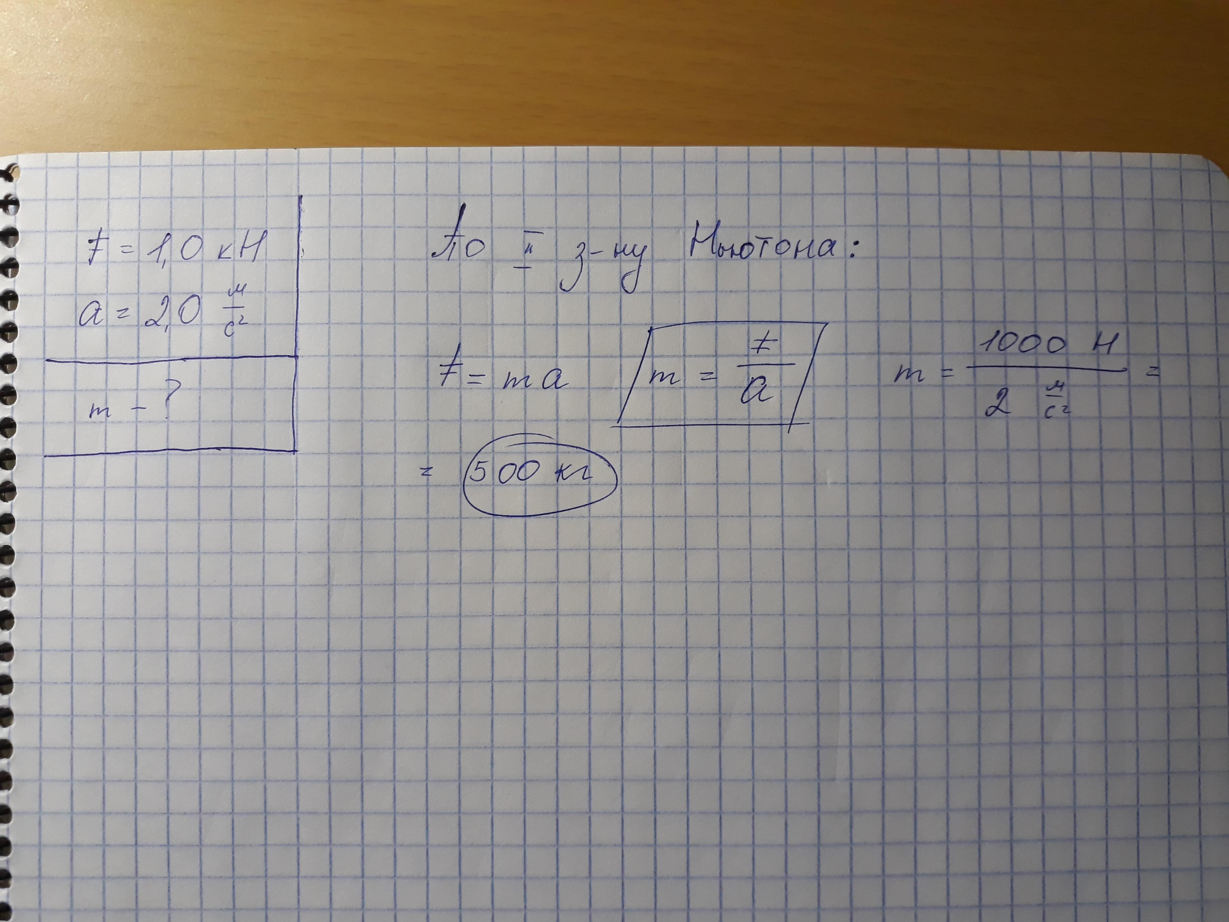 под действие силы,модуль которой F=1,0 кН, тело приобретает ускорение,модуль которого а=2,0 м/с2.Найдите массу тела