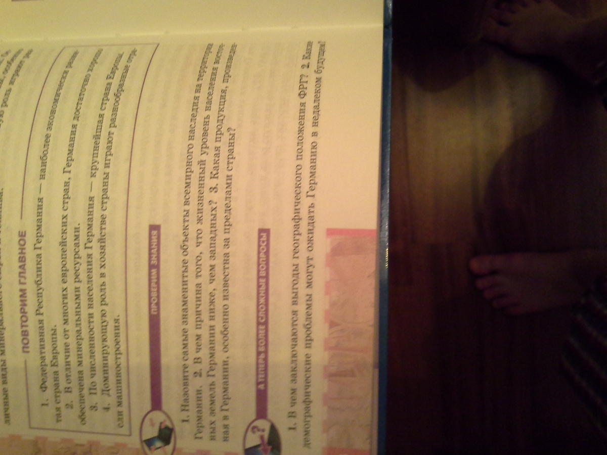 1.Выгода географического положения ФРГ в том,что она находится в самом сердце Европы,вокруг неё все высокоразвитые государства,нахо-