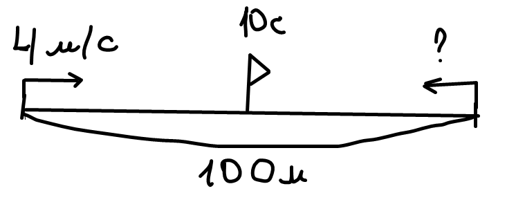 Два мальчика одновременно пробежали навстречу друг другу по спортивной дорожке, длина которой 100 метров. Они встретились через 10 секунд. 1 мальчик бежал со скоростью 4 м/сек. С какой скоростью бежал второй мальчик?