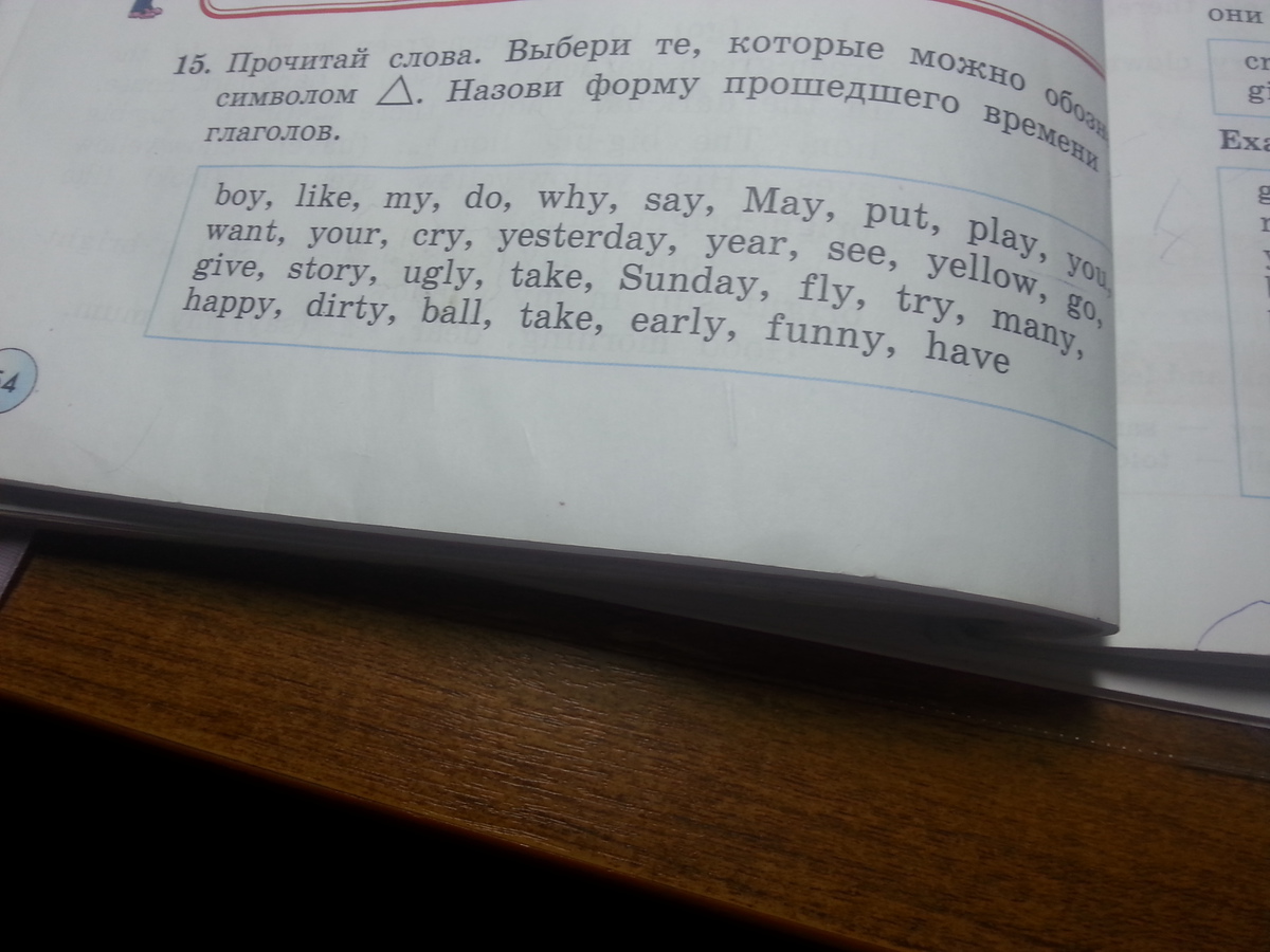 Прочитай слова . Выбери те, которые можно обознвчить треугольником . Назови форму прошедшего времени этих глаголов.