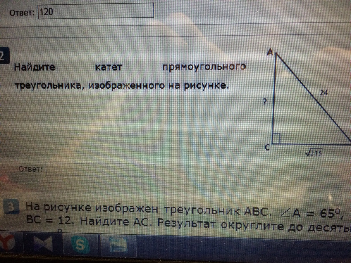Найдите катет прямоугольного треугольника, изображенного на рисунке. Заранее спасибо!!!