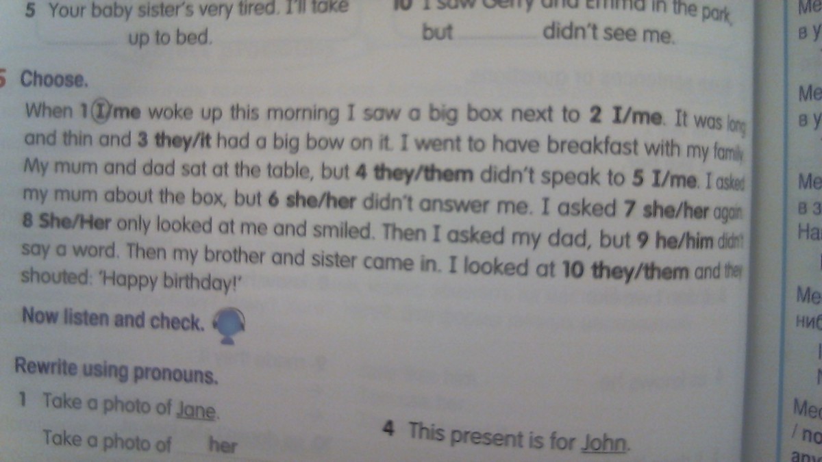 2. me 3. They 4. They 5. Me 6. she 7. her 8. she. 8. he 9. them