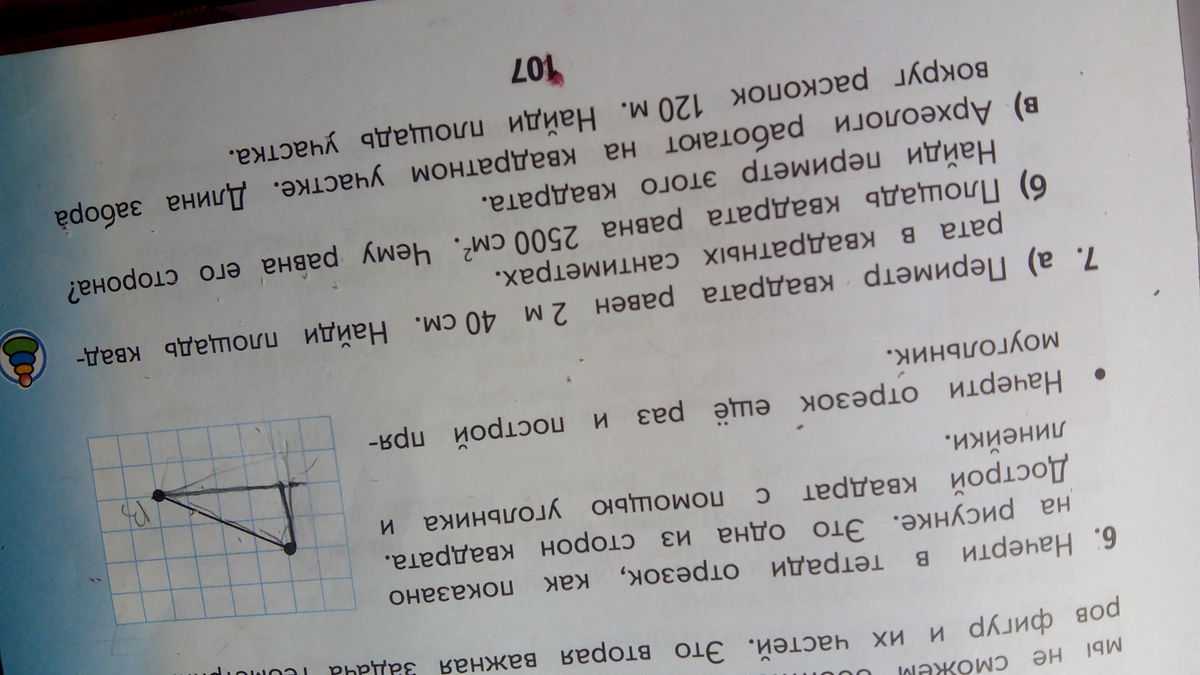 помогите. б)площадь квадрата равна 2500см² .Чему равна его сторона?найди периметр этого квадрата. в)археологи работают 120м .найди площадь участка . помогите
