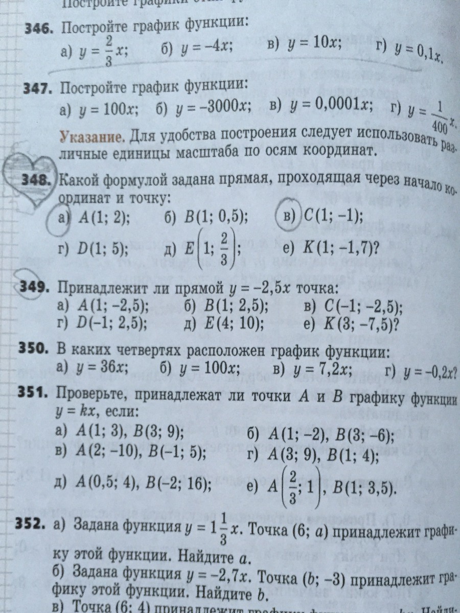 А(1;3);В(3;9) у=кх. Найдем значение к,подставив значение одной из точек: 3=к*1;к=3, значит координаты второй точки превратит в тождество уравнение прямой у=3х.Подставим координаты В и проверим,если тождество верно, то точка принадлежит прямой и обе точки лежат на одной прямой: 9=3*3; тождество верно.А и В принадлежат одной прямой. Остальные так же.