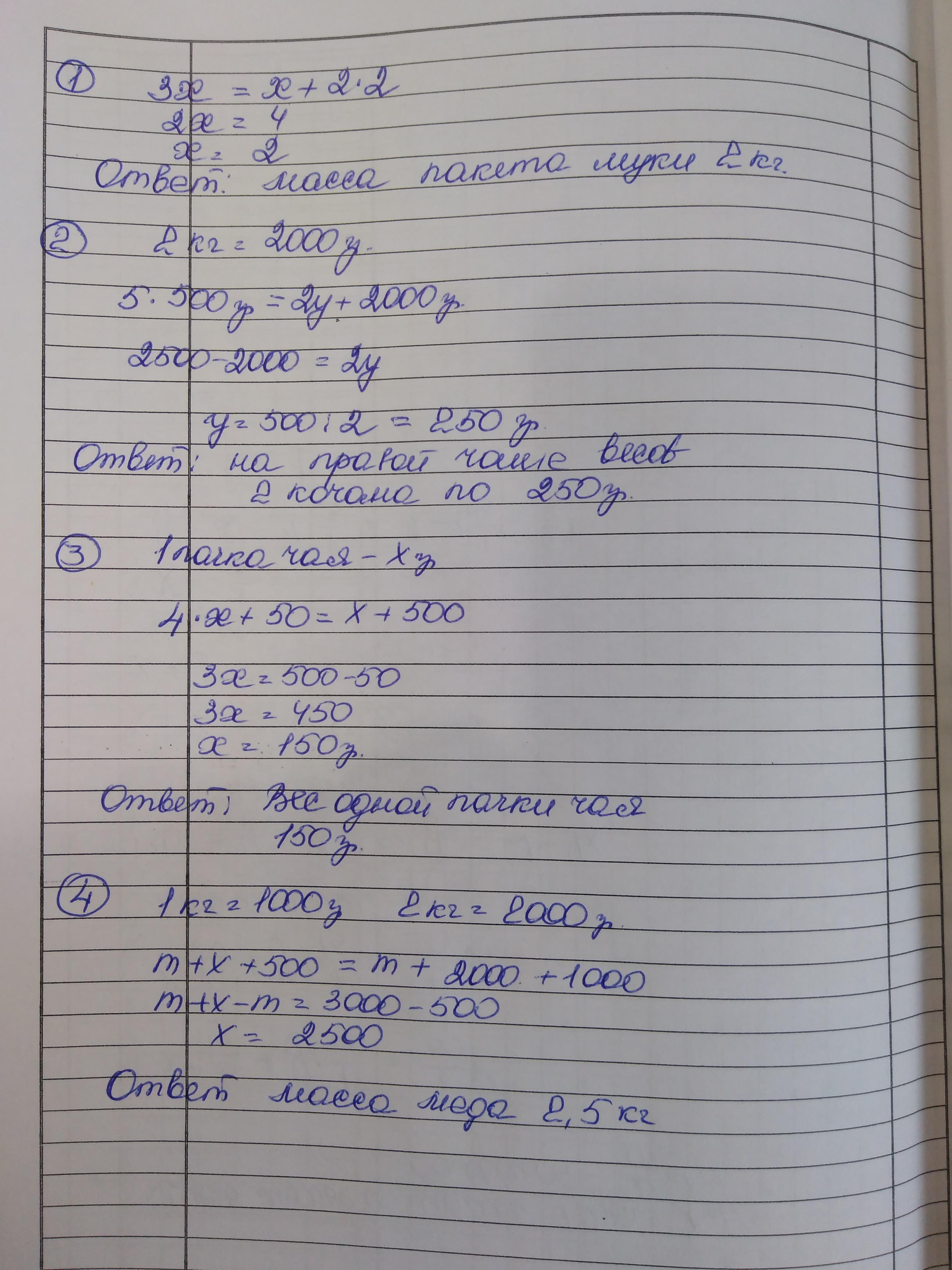 Составьте по рисунку линейное уравнение,где масса одной пачки чая равна х кг.