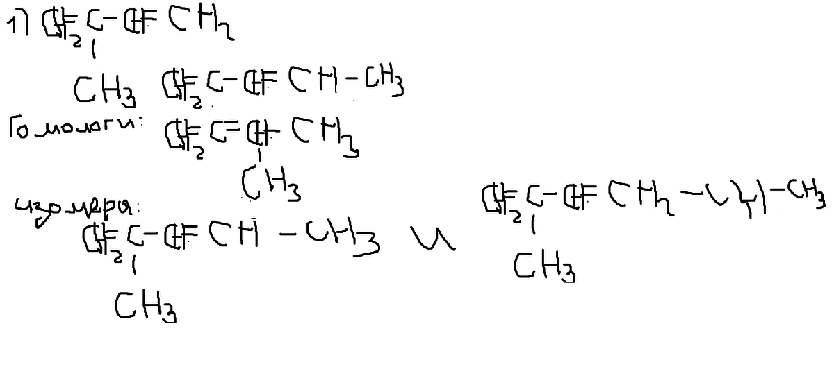 1.напишите формулу 2-метилбутадиена-1,3.составьте структурные формулы 2-ух гомологов и 2-ух изомеров .дайте им названия