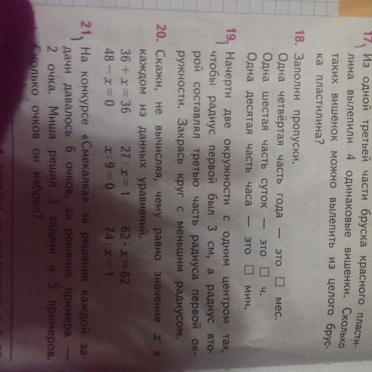 радиус - расстояние от центра окружности к дуге первая окружность с радиусом 3 вторая- 3/3=, значит радиус =1 Вторая окружность меньше, чем первая, значит надо закрасить вторую окружность У меня првильно