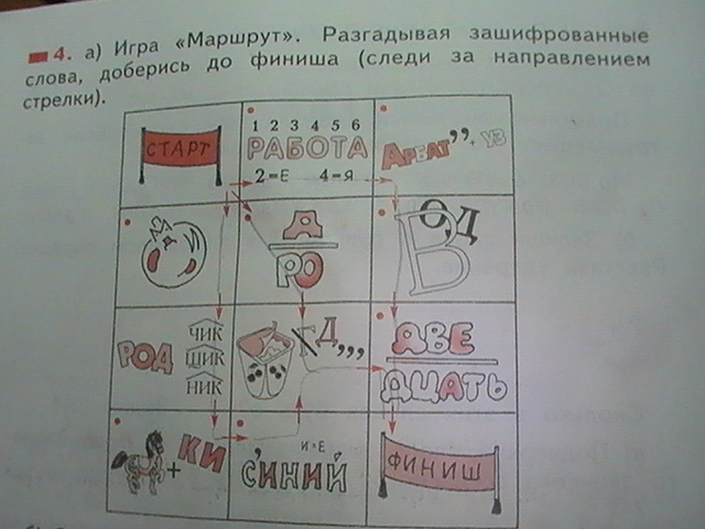 Зашифрованные слова, но не по маршруту, а по порядку: ребята, арбуз, помидор, народ, завод, родник, йод, двенадцать, коньки, иней. По стрелкам распределите просто.