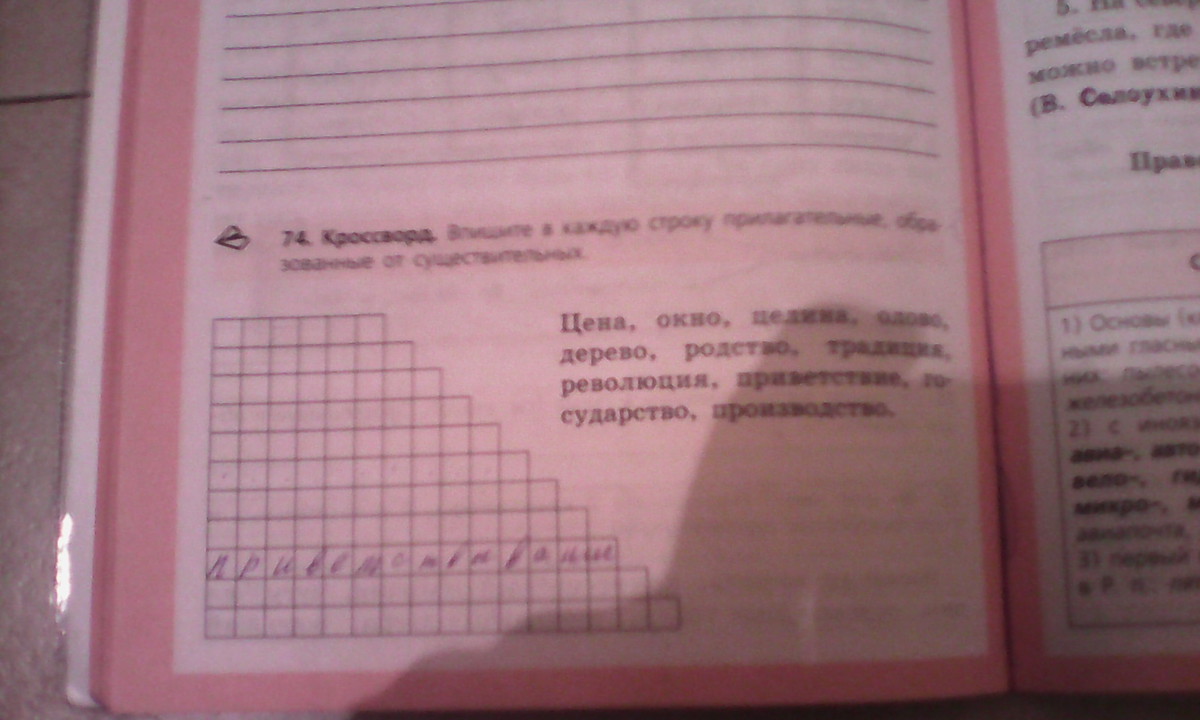 впиши в каждую строку прилагательные,образоваанные от существительных.