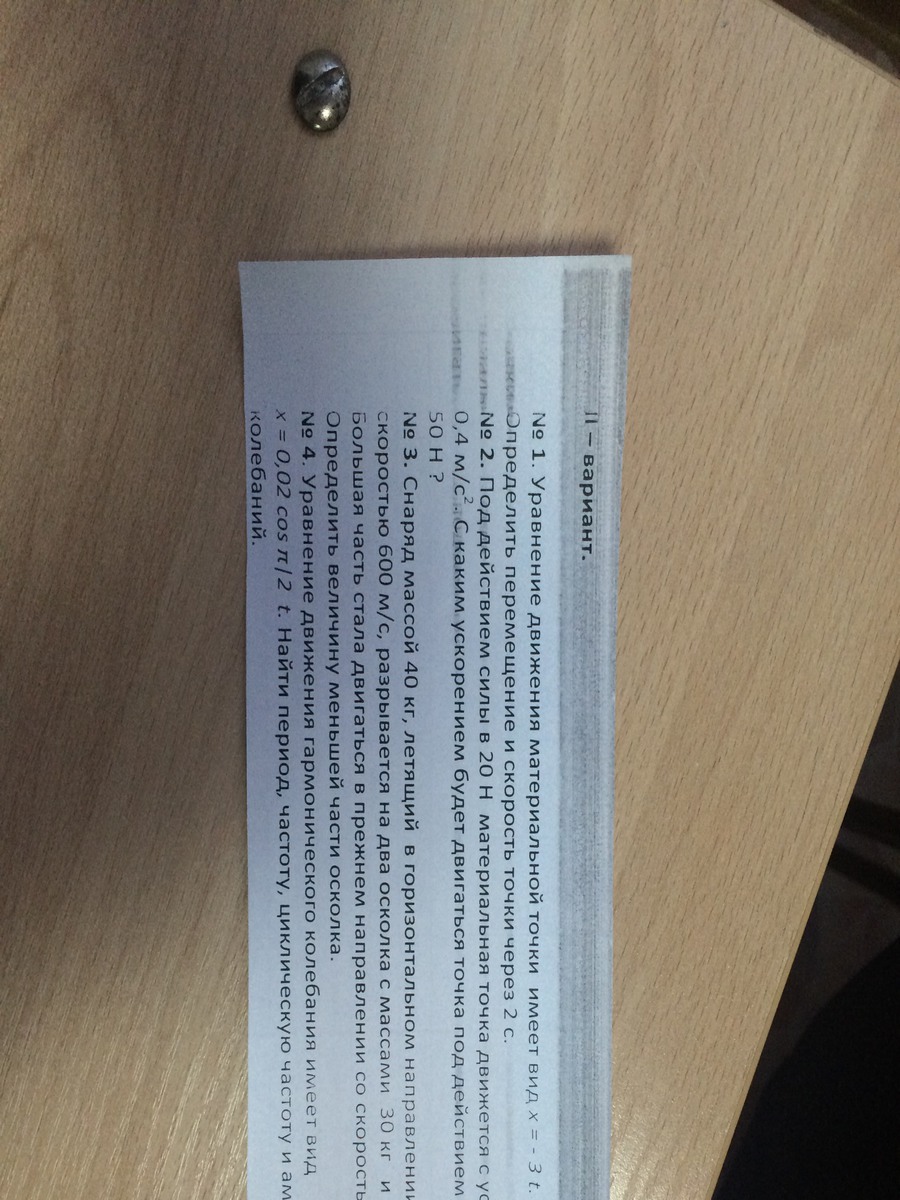 4 задание пожалуйста срочно: Уравнение движения гармонического колебания имеет вид х = 0,02 cos п/ 2 t. Найти период, частоту, циклическую частоту и амплитуду колебаний.