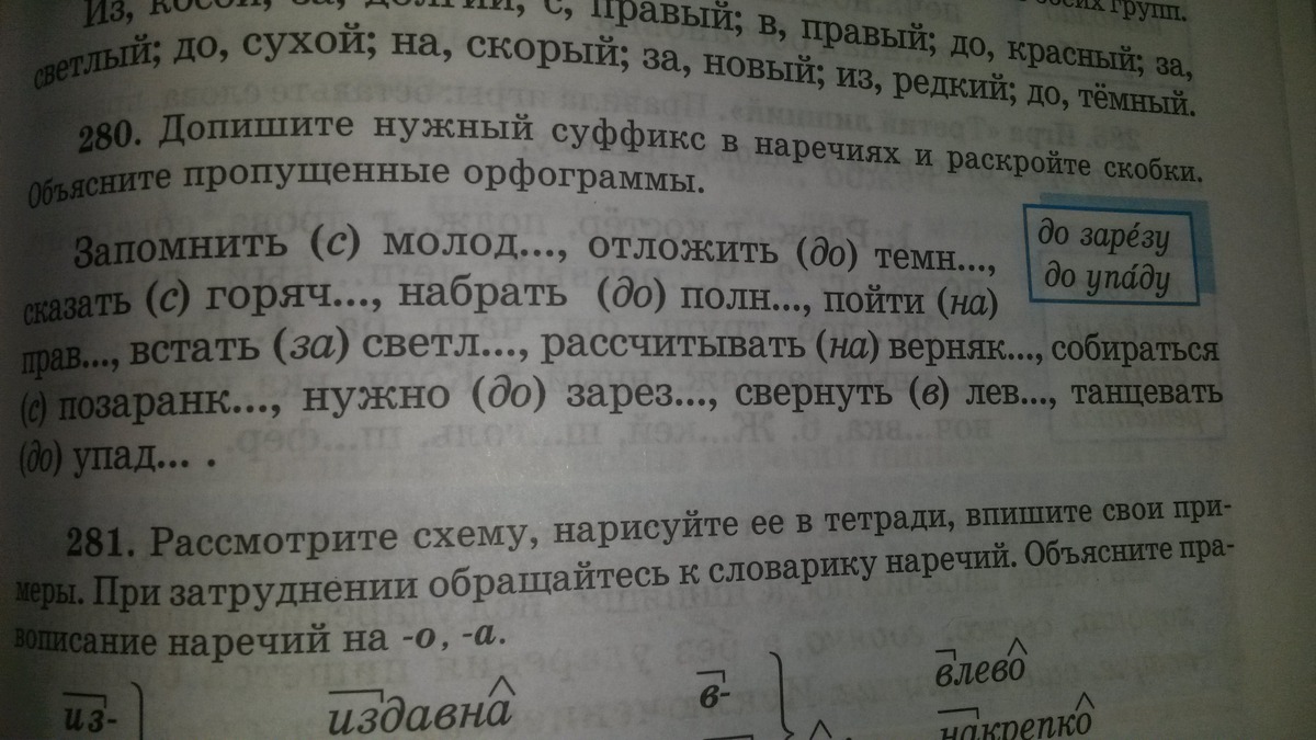 запомнить смолоду ,отложить дотемна ,сказать сгоряча ,набрать дополна, пойьи направо ,встать засветло,рассчитовать наверняка , собиратся спозоранка,нужно дозареза,свернуть в льва,танцевать доупада