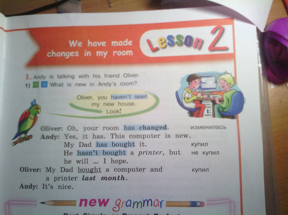 Задание: Энди разговариват со своим другом Оливером. Что нового в комнате Энди?
