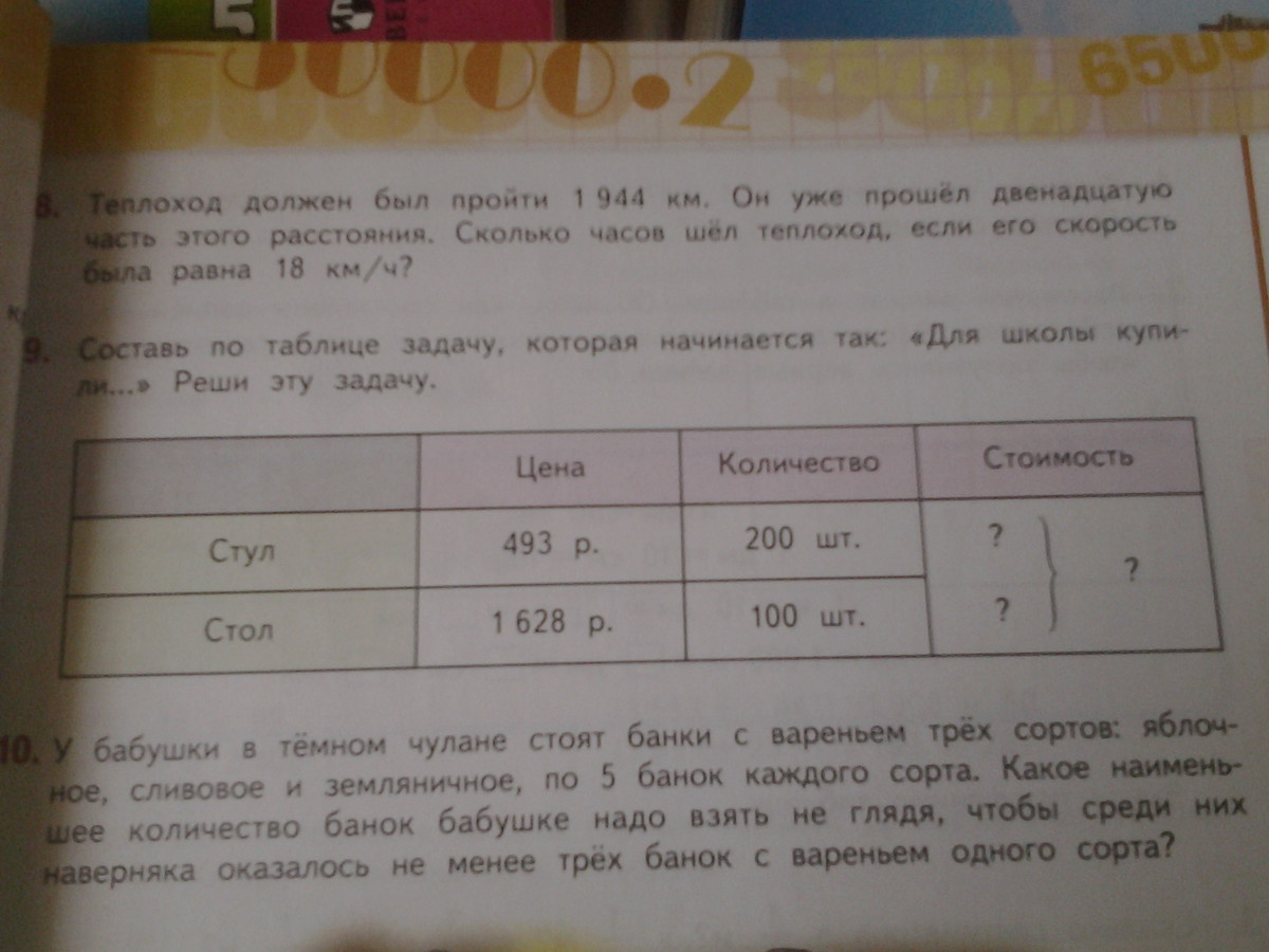 Составь по таблице задачу, которая начинается так: Для школы купили .... Решил эту задачу .