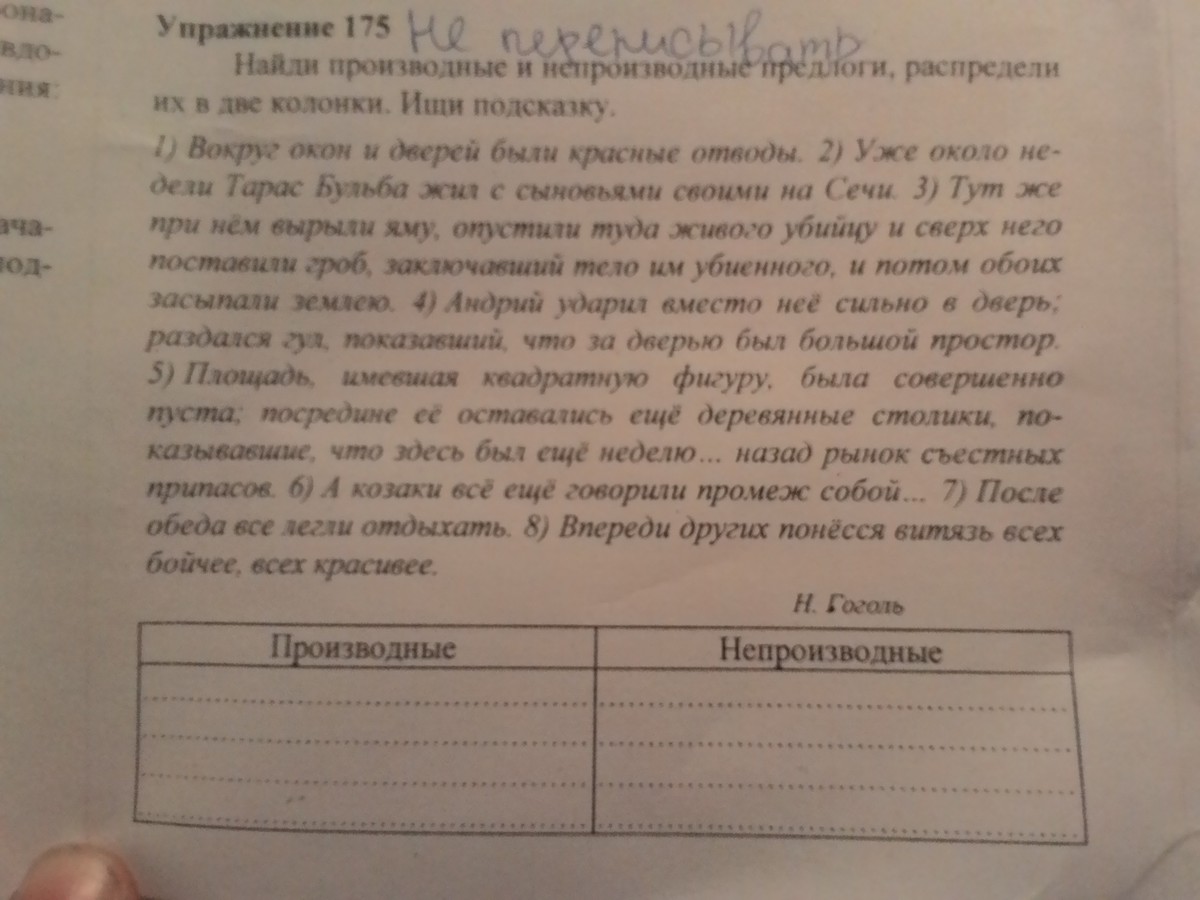 Найди производные и не производные предлоги,распредели их в две колонки. Ищи подсказку.Помогите пожалуйста. (смотреть картинку ниже)