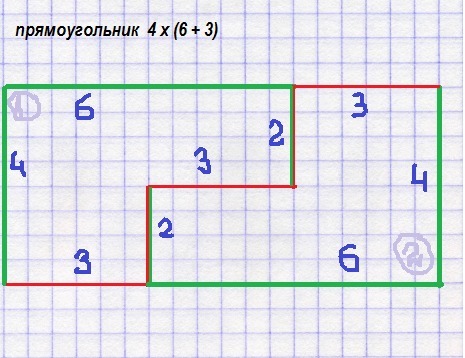 Получим прямоугольник со сторонами 4 см и 6+3=9(см)