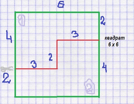 квадрат с длиной стороны 6 см разрезали на 2 части по ломаной из трёх звеньев а затем из полученных частей составили прямоугольник . начерти такой квадрат на клетчатой бумаге и покажи как надо его разрезать