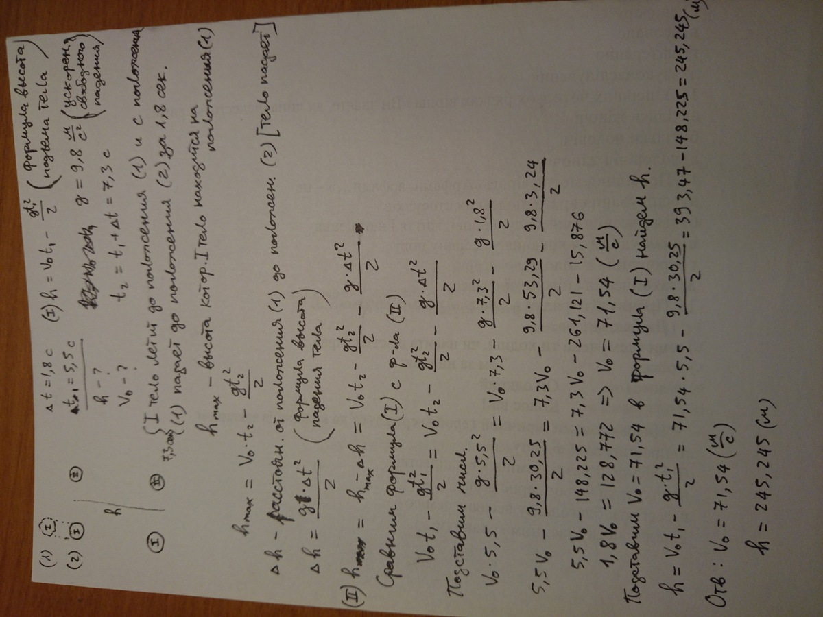 вычислить начальную скорость ν₀, если оба тела через промежуток времени t=5,5с после броска оказались на одной высоте h. Также найти эту высоту.