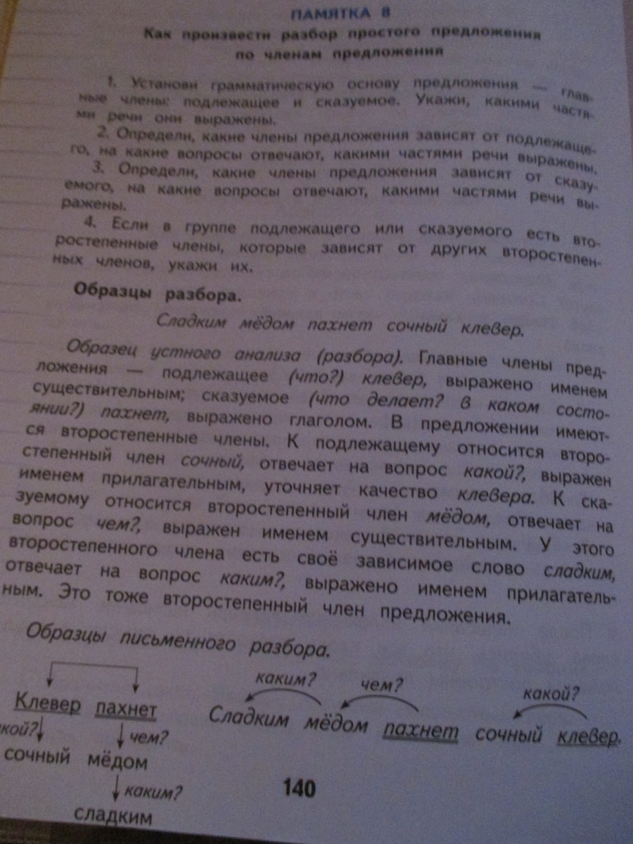 Подчеркни главные члены предложений. Укажи частями речи они выражены. У глаголов определи форму времени.Произведи письменный разбор 1 предложения: памятка 8