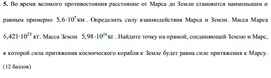 там вообще-то два вопроса первый сила взаимодействия Земли и Марса а второй о точке