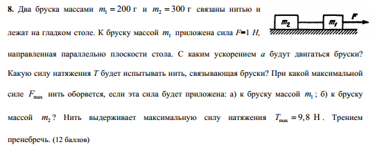 Fmax=Т*(м1+м2)/м1=9.8*0.5/0.2=24.5Н при прикреплении к второму