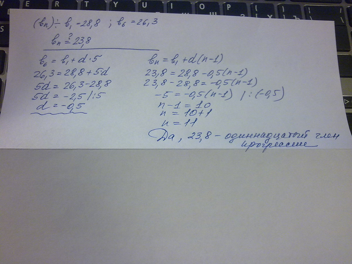 Является ли число 23,8 членом арифметической прогрессии (bn) в которой b1=28,8 ; b6=26,3 и если да, то каков его номер?