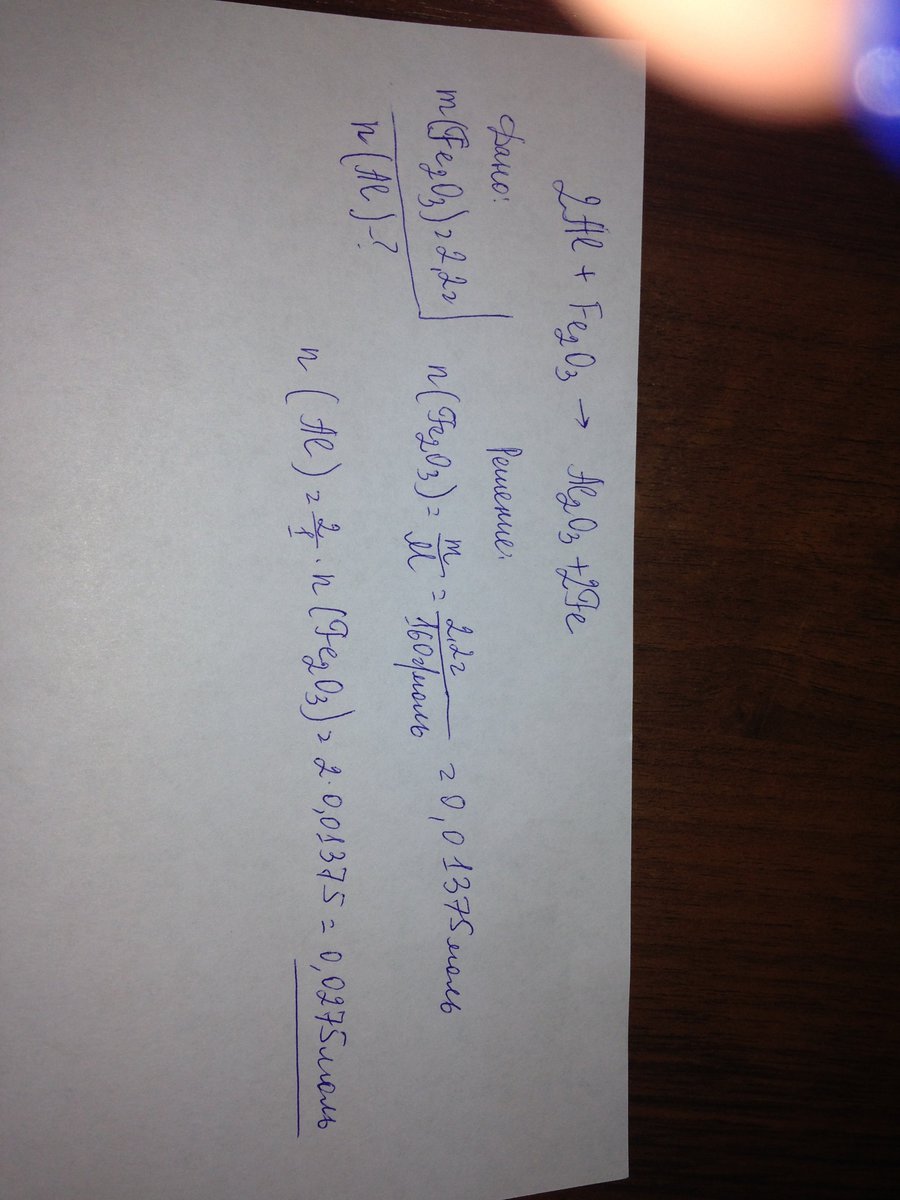 Ск-ко молей алюминия учавствовало в реакции, если в реакцию вступило 2,2г. оксида железа (III) Fe2O3????