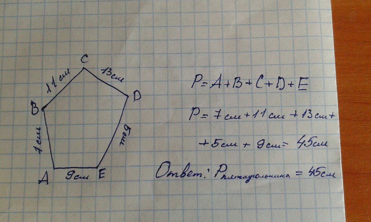 АВ+ВС+СД+ДЕ+ЕА=Р