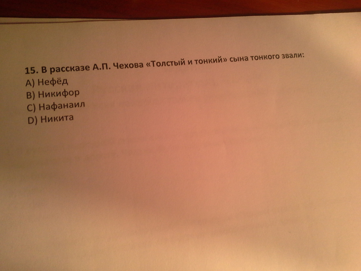 В рассказе А П Чехова толстый и тонкий сына тонкого звали : нафанаил