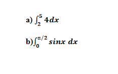 Например: (твой первый интеграл от 2 до 5 от 4 по dx=4x|сверху 5 снизу 2=4*5-4*2=20-8=12